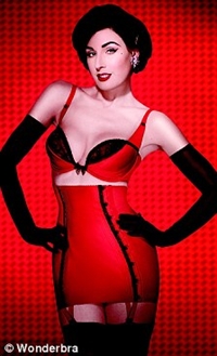 Corsés, cintas de raso y ligueros conforman la llamada Wonderbra Party Edition, para la que la propia Dita ha prestado su imagen como ya hiciera la temporada pasada. Más sugerente que nunca, protagoniza una sesión de fotos donde lo retro se funde con los colores propios de la cultura pop, como si de una Marilyn Monroe morena se tratase.