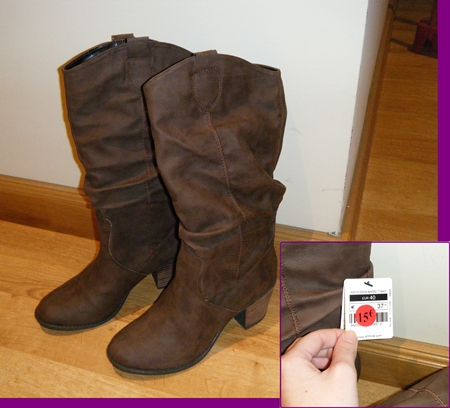 La primera gran adquisición de la tarde han sido estas botas en Pimkie, quién me lo iba a decir. Con lo poco que me gusta a mí Pimkie en general, y con lo anti-marrón que soy yo. Pero las botas están genial, el marrón al ser desgastado me gusta, y lo cierto es que son comodísimas. ¡Y encima a 15 euros! Mientras esperaba para pagarlas me han preguntado dos chicas que dónde las había cogido. Pero eran las últimas que quedaban, y justo en el número 40 (aunque el mío es un 39-40, me gusta comprarme las botas en un 40, para poder usarlas con clacetines «esponjosos»). En Pimkie me he comprado también algunas camisetas de colores de manga larga, que estaban a 2 y 3 euros.