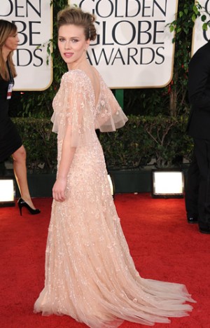 Los tonos nude fueron los favoritos de las celebrities para vestirse de gala y posar en la alfombra roja en esta edición de los Globos de Oro. Y como ya sabéis que tengo debilidad por ella, os dejo con estas fotos del exquisito vestido de Elie Saab que lució Scarlett Johansson, de gasa bordada de pedrería y escotazo, tanto por delante como por detrás.