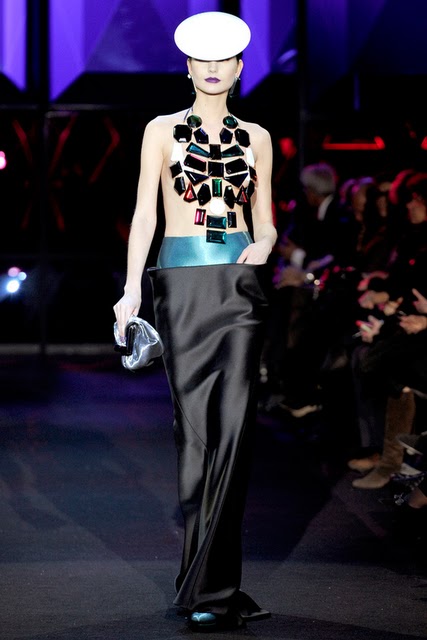 Una ración de alta costura para empezar el martes con buen pie: os traigo las fotos de la colección primavera verano 2011 de Armani Prive. Diesños muy sofisticados y futuristas, volúmenes geométricos, vestidos de texturas metalizadas y acabados brillantes… Hay que ser valiente para lucir cualquiera de estos modelitos, aunque seguro que más de una celebrity nos sorprende en la alfombra roja. A mí lo que me hace gracia son los tocados, que recuerdan a platillos voladores…