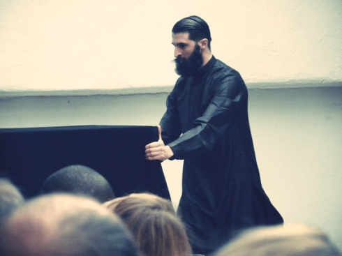 Pero una de las cosas que más ha llamado la atención en este desfile ha sido que el diseñador abrió e intercaló la presentación de sus creaciones con números de ilusionismo que él mismo protagonizaba.