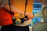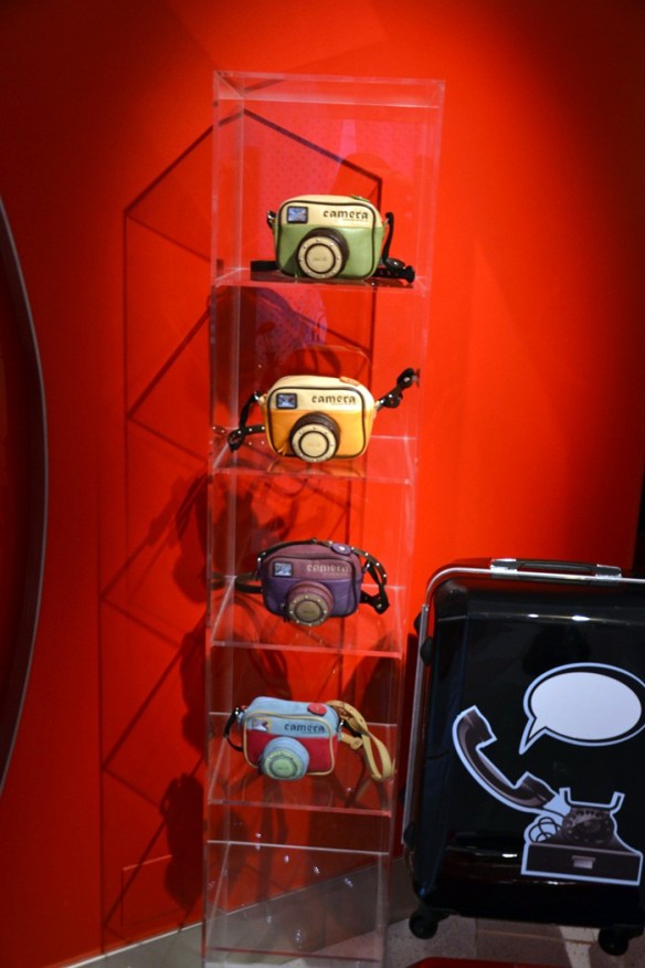 Aunque las maletas con estampado collage fueron casi mi debilidad, lo que realmente nos cautivó a todas las presentes fue la originalidad de los bolsos-guitarra y, sobre todo, estos pequeños bolsitos con forma de lomográfica. ¿No son una preciosidad? Estarán disponibles en colores diferentes, y prometo que muy pronto me veréis lucir uno de ellos en alguna foto… 😉