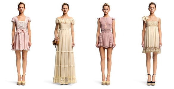 No tengo ninguna duda de que los vestidos de la colección Red Valentino primavera verano 2011 que quiero enseñaros hoy os van a encantar. Además de un par de modelos bicolor muy originales, he encontrado cuatro vestidos de estilo romántico y lencero en tonos marfil y rosa palo, que me hacen pensar un poco en las prendas vaporosas del desfile de Alberta Ferreti.
