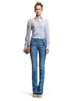 La colección incluye también la revisión de ciertos clásicos del denim, como camisas que centran la atención en las mangas, y pantalones de talle alto y corte ligeramente acampanado.