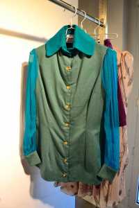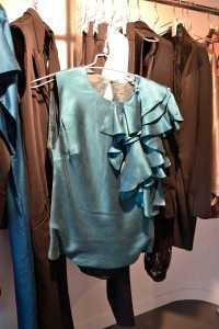También Alexia hace uso de la mezcla de tejidos, aunque con pretensiones más sensuales y femeninas, como la resultante de mezclar un material suntuoso como el terciopelo, con otros más ligeros como la gasa de seda para las mangas.