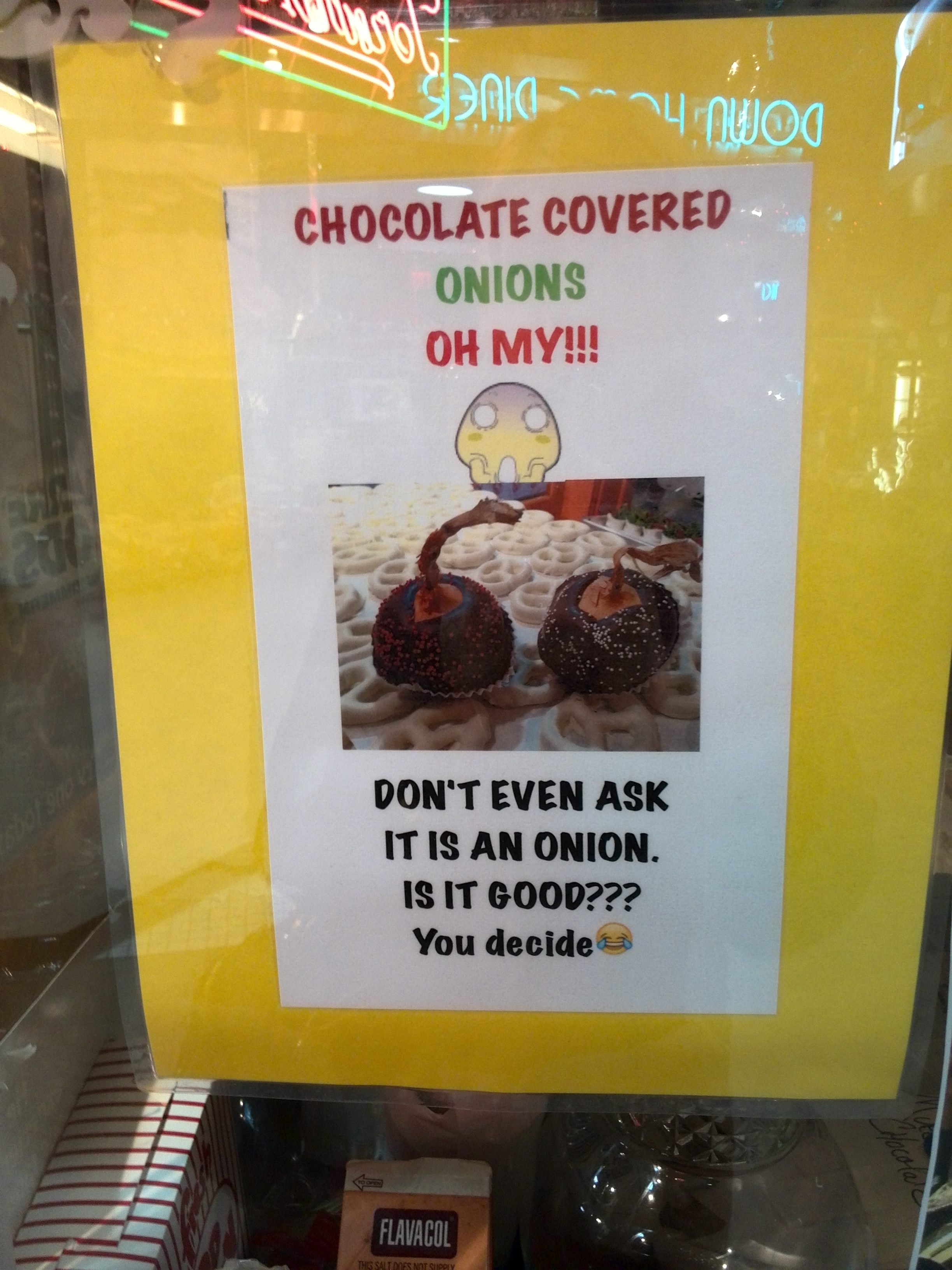 En muchos mercados es habitual encontrar puestos de manzanas cubiertas de chocolate o caramelo, pero en este de Philadelphia van un paso más allá y lo que te venden son ni más ni menos que cebollas recubiertas de chocolate. Tenían además una galería de fotos de gente que se animaba a probar esta exquisitez y la verdad es que las expresiones faciales de las víctimas no hablaban a favor de la delicatessen.