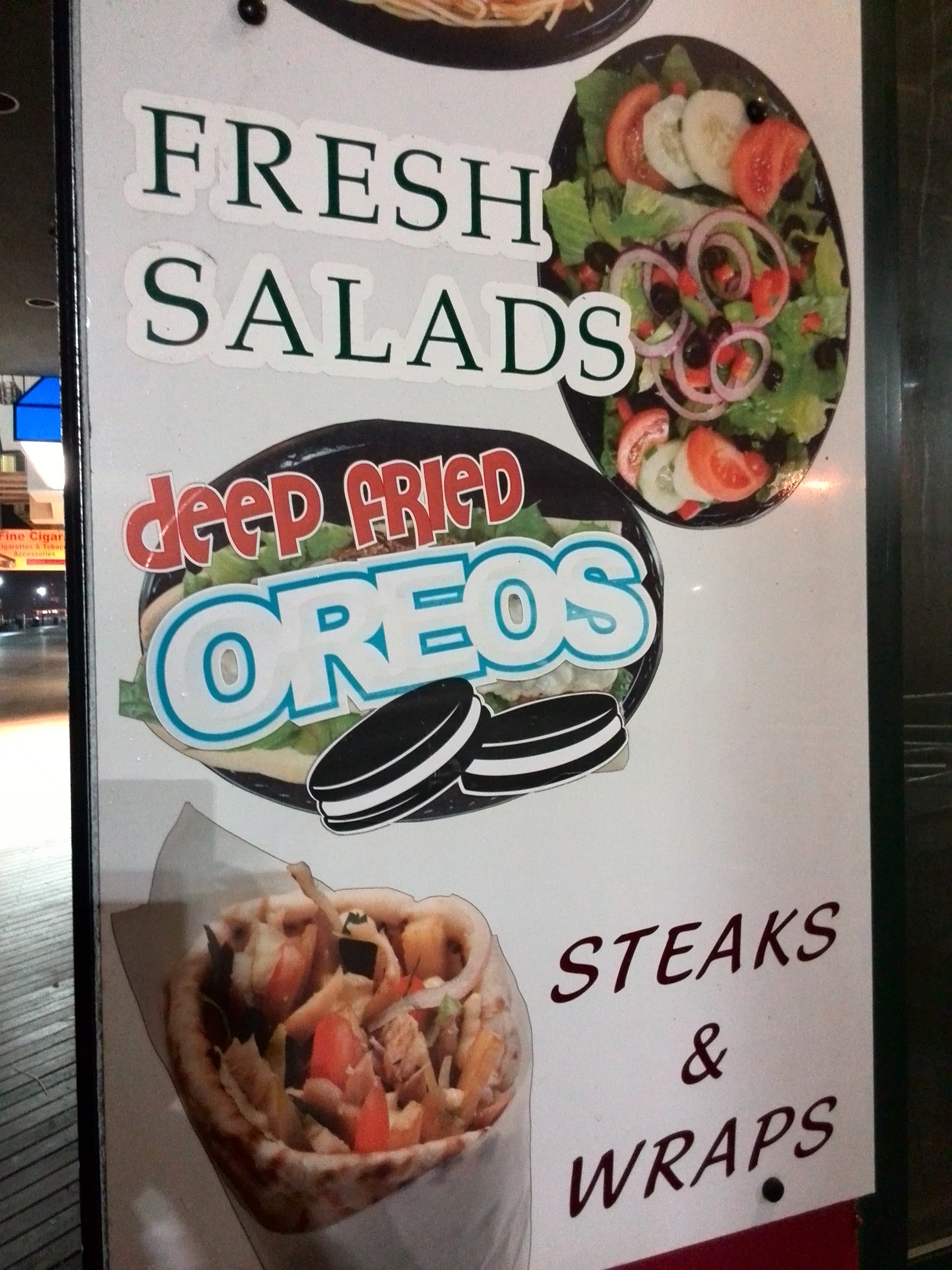 ¿Creías que ya lo habías visto todo? Pues agárrate porque en Atlantic City es normal encontrar lugares en los que te sirven tu ensalada con unas galletas Oreo fritas. Sí, has leído bien. Luego habrá quien se queje porque no adelgaza a pesar de estar a base de ensaladas…
