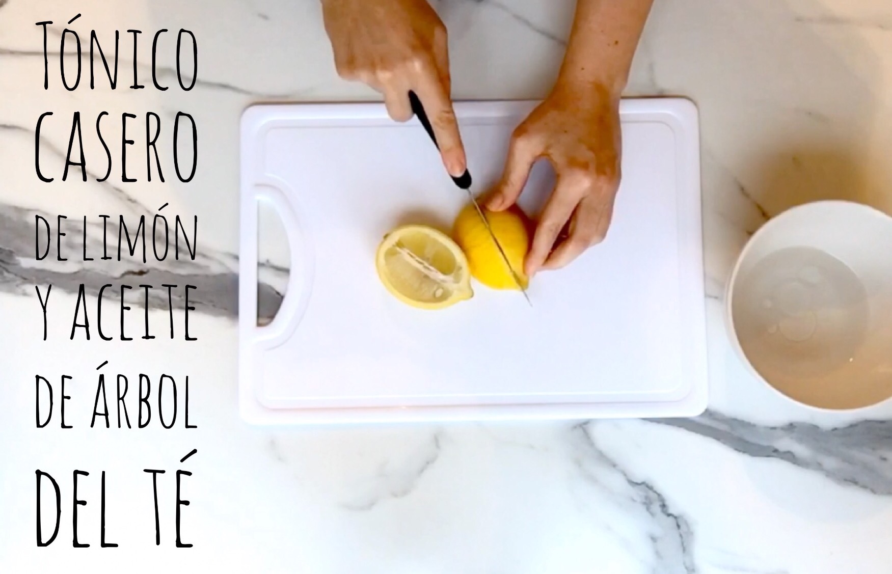 Por eso en mi Cosmoclip de esta semana os cuento paso a paso cómo fabricar un tónico casero a partir de dos ingredientes muy fáciles de conseguir: zumo de limón y aceite de árbol del té.