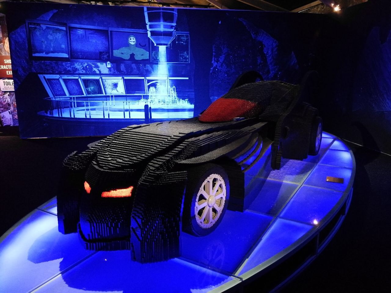 El plato fuerte de esta exposición la encontraremos sin lugar a dudas al final de la misma, al llegar a la batcueva: un batmóvil a escala real (5,5 metros) para el que han hecho falta casi medio millón de piezas estándar, que se dice pronto.