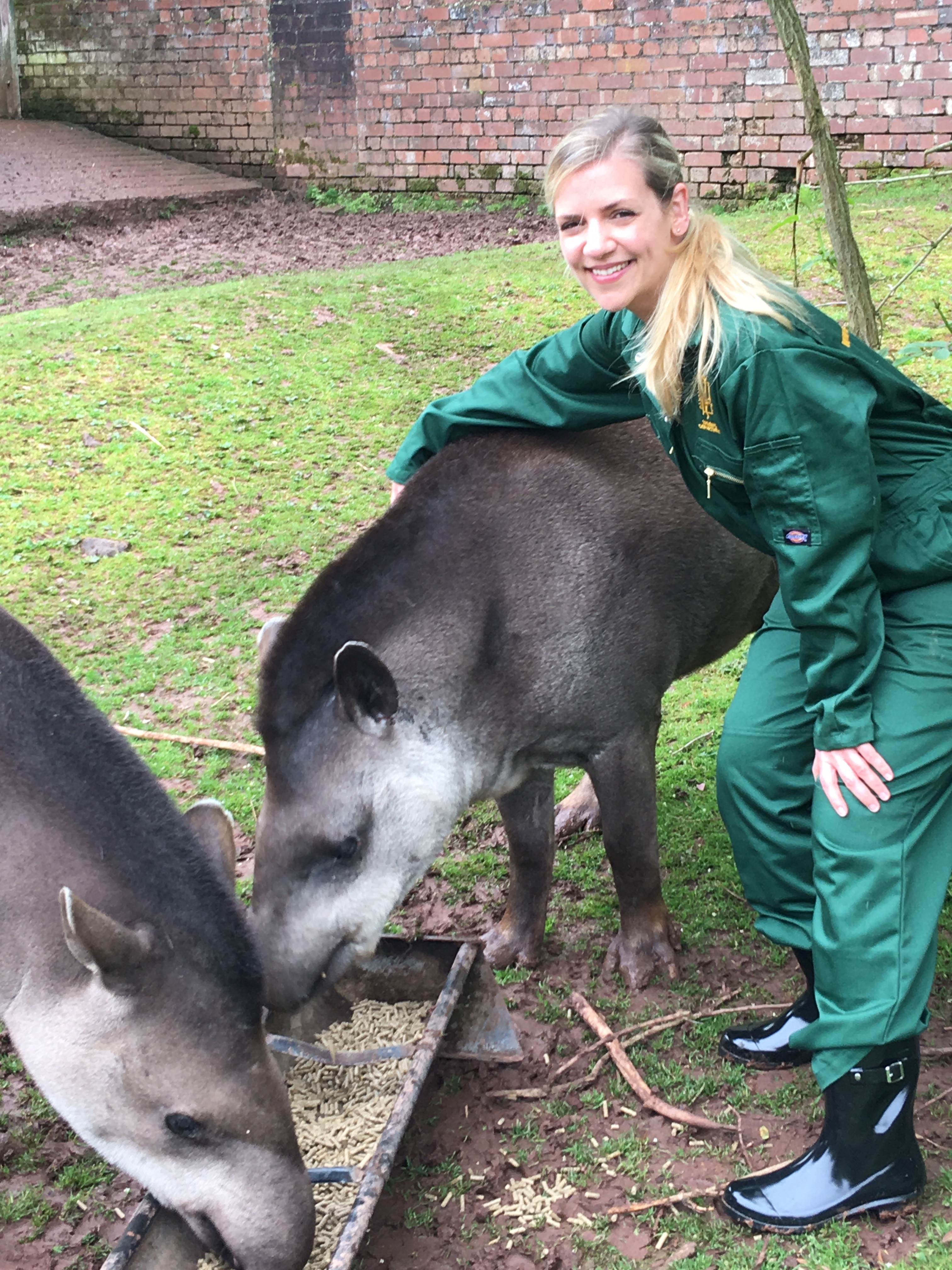 Porque, aunque yo pensaba que el trabajo iba a ser algo de carácter simbólico, lo primero que me dieron nada más llegar al departamento de grandes mamíferos fue ¡una carretilla con una pala para limpiar el hábitat de los tapires! Y es que si algo queda claro desde el primer minuto de la jornada en el zoo, es que el de cuidador es un trabajo que puede resultar muy duro en determinados momentos.