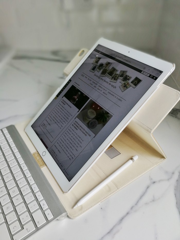 Aunque aún sigo usando de vez en cuando la funda de Speck que os mostraba en este post, desde el primer momento tuve claro que tenía dos inconvenientes: el primero, y más importante, es que no disponía de ningún lugar en el que enganchar el Apple Pencil y me he llevado más de un susto pensando que lo había perdido por culpa de algún despiste; el segundo, que solo me permitía poner el iPad en modo apaisado.